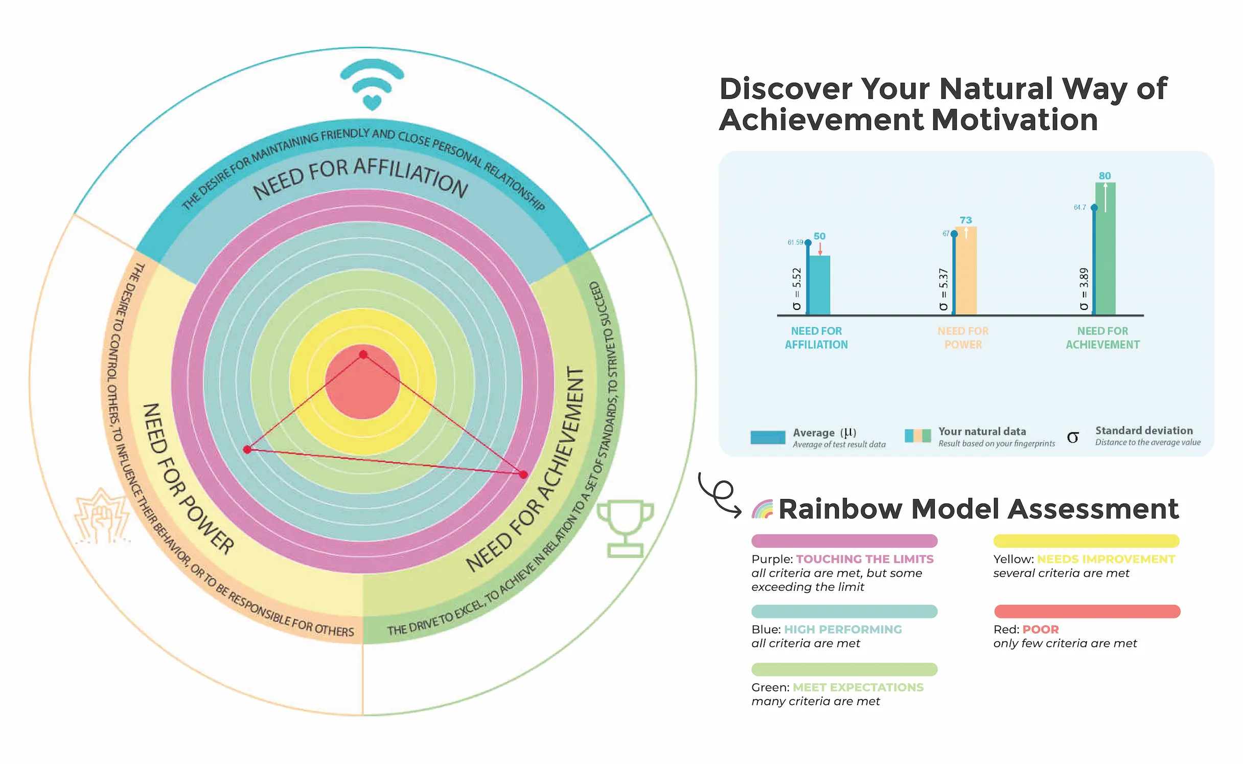 PRiADI心理指纹测试借鉴了David Clarence McClelland的动机理论,探索了成就动机作为个人内在驱动力的一个基本方面。PRiADI测试认为,这种设定并追求具有挑战性但切合实际的目标的内在需求,体现在个人独特的心理指纹模式中。